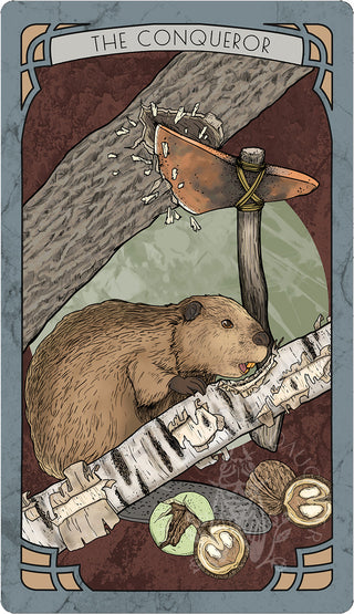 The blade of a copper-headed axe splits the lip of a slowly deepening cut in a black walnut tree, set to crack and topple. A beaver follows suit, gnawing dutifully with iron hardened teeth into the paper birch he needs to collect if he’s to repair his dam. A bit of drudgery well worth the effort.