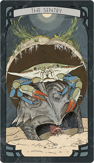 Foul weather is the Sentry’s friend. It is a warning that the tides might be turning against him. A sturdy outlook and a thick brow keep him secure when the ocean slams against the shore. The Sentry seeks safe harbor wherever he can, whether behind a timeworn dune or on the ocean floor under the rolling current. He shields himself against the bashing waves, a guardian against death and a defender of life. There is a willingness to offer up a part of himself in service to a greater cause.